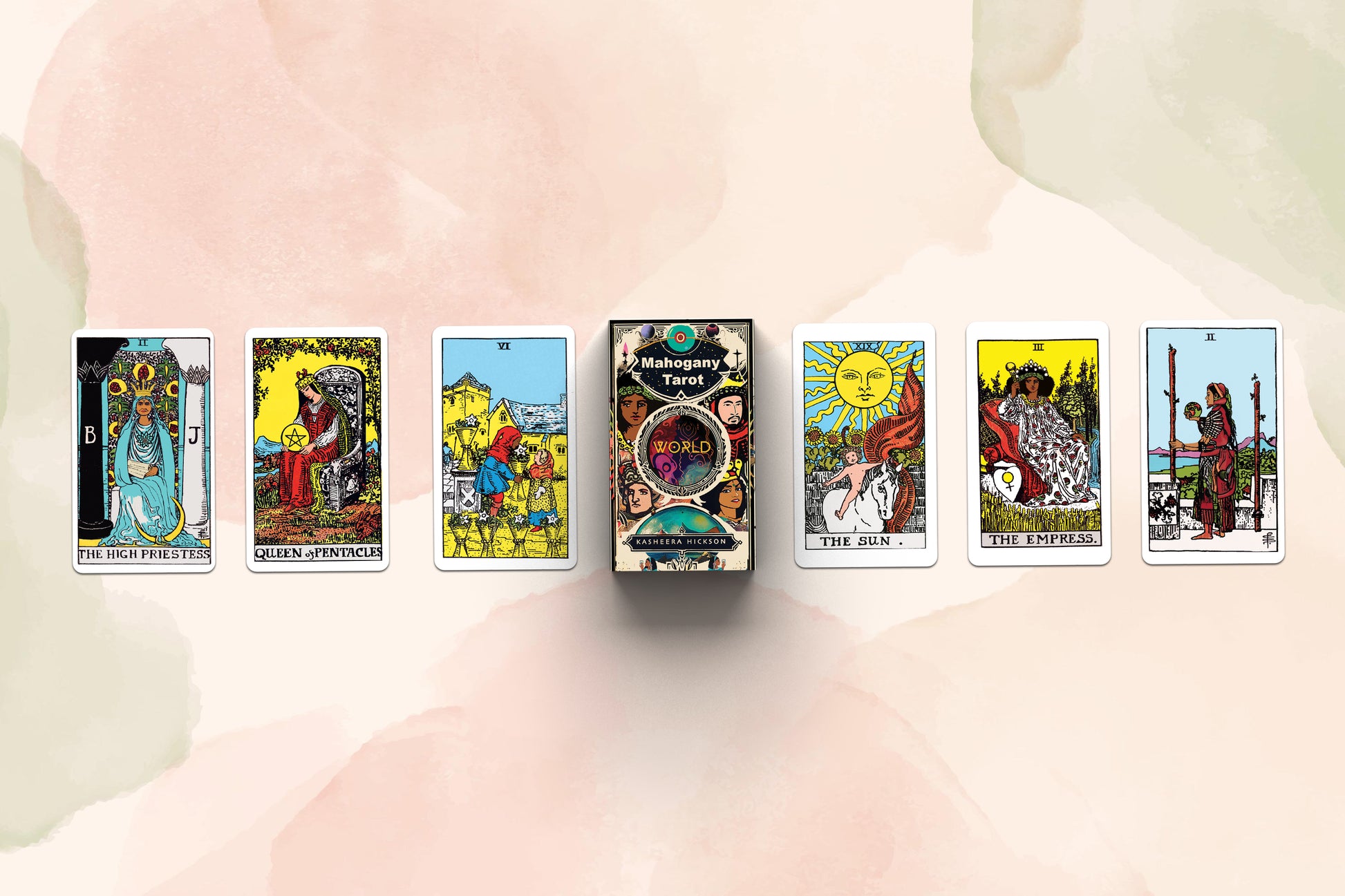 Kasheera Hickson is an artist, tarot reader, and energy healer who became inspired while learning the art of tarot to reimagine the traditional tarot in shades of Mahogany. The additional artistic renderings remain true to the classic imagery that has made the original so timeless and loved.