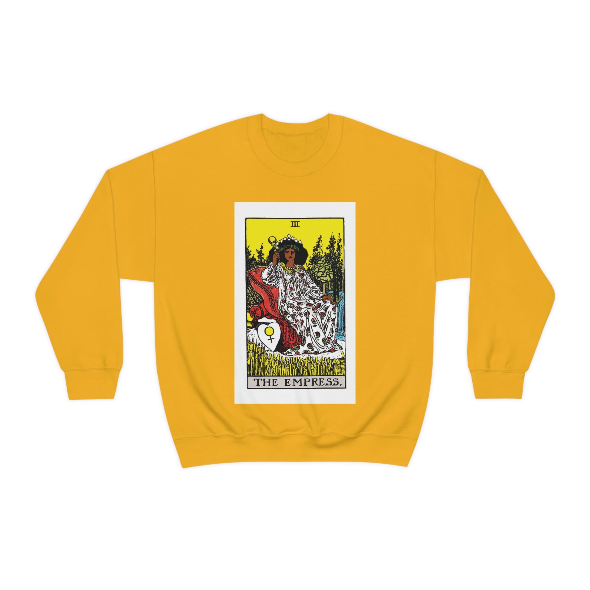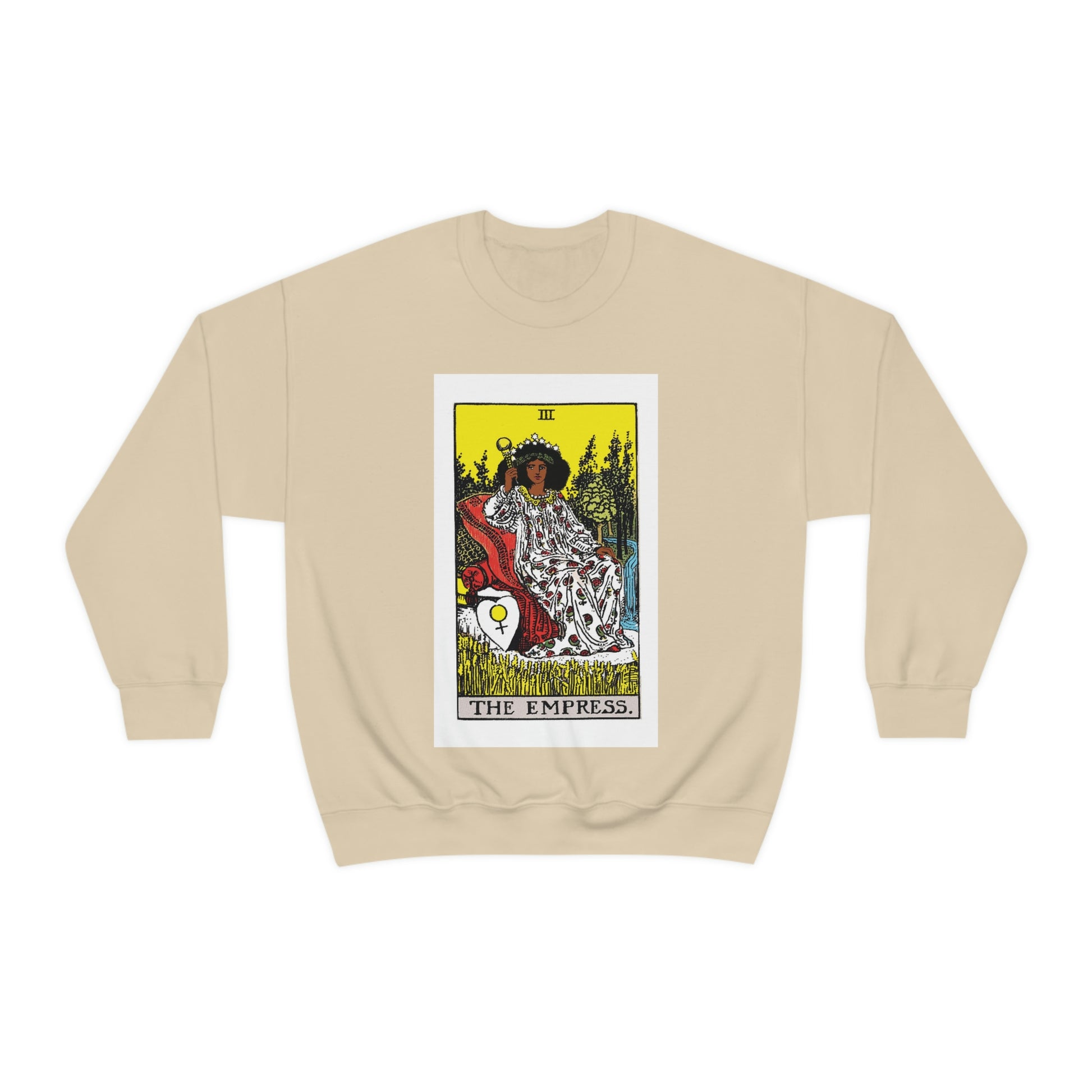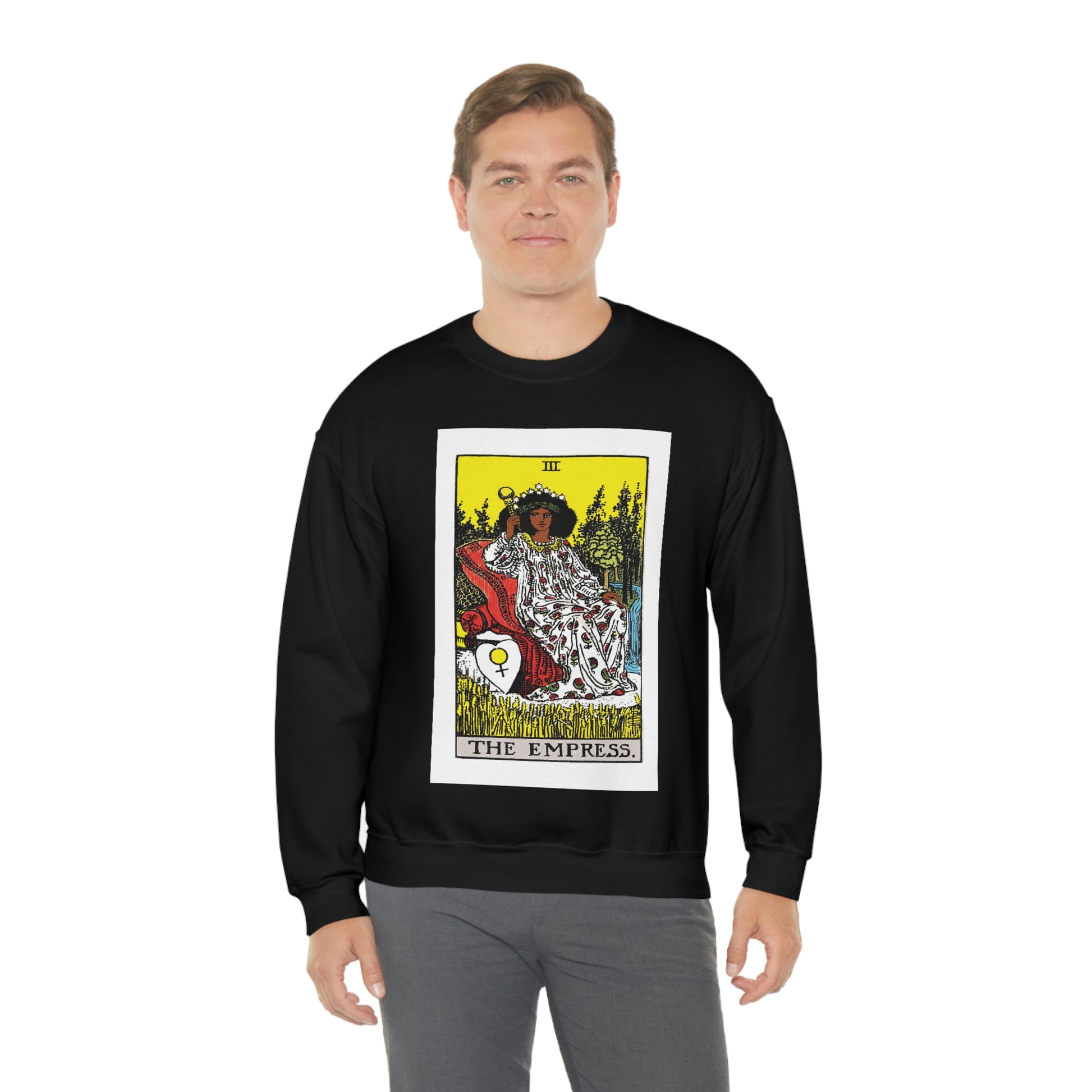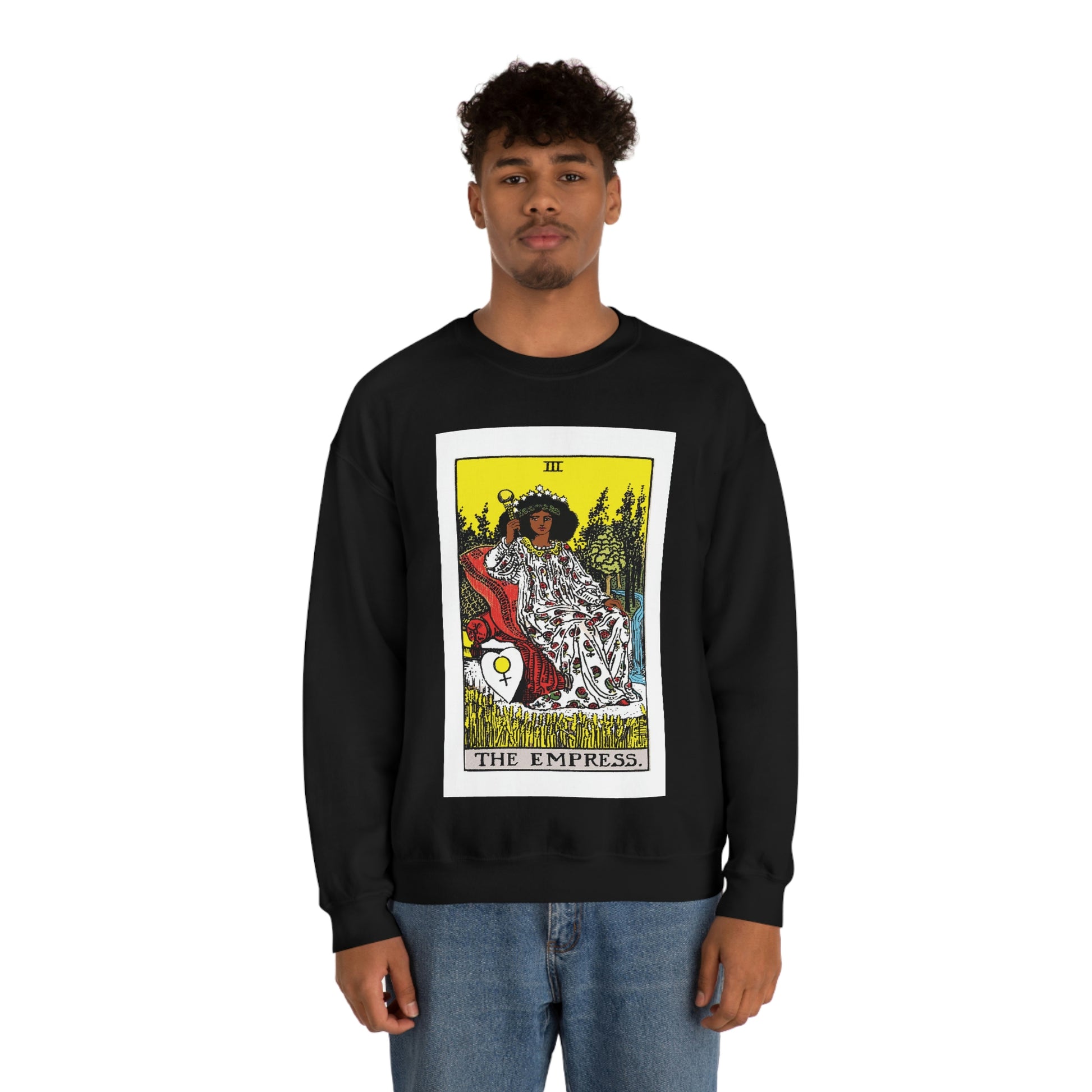 Embrace the energy of the Empress and manifest abundance in all areas of your life with our specially crafted unisex sweatshirt. The Empress represents motherhood, fertility, and abundance. The Cotton and Polyester medium-heavy fabric provides both comfort and durability, perfect for everyday wear and to stay cozy while you meditate on the powerful message of the Empress. This sweatshirt is perfect for any tarot enthusiast and also makes a great gift for a friend or loved one.